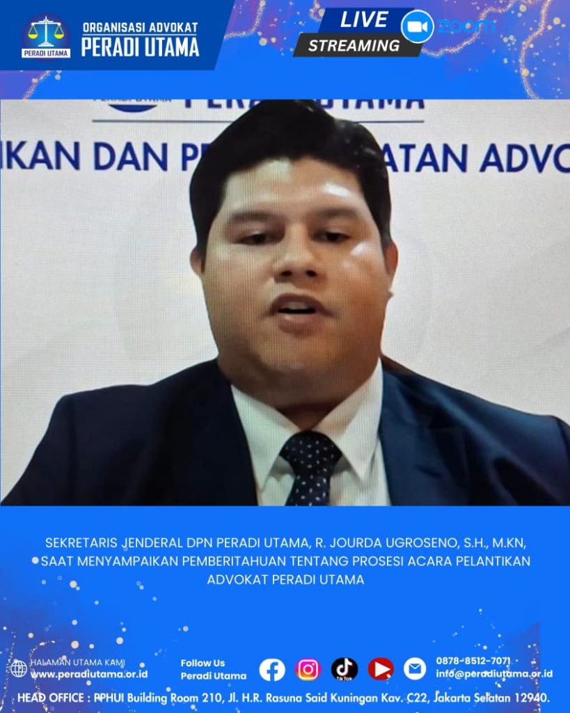 Sekretaris Jenderal DPN Peradi Utama, R. Jourda Ugroseno, S.H., M.Kn, dalam pemberitahuannya menegaskan bahwa seluruh peserta wajib mengikuti rangkaian acara secara tertib dan khidmat, mulai dari registrasi hingga penutupan, serta mematuhi ketentuan teknis yang telah ditetapkan.